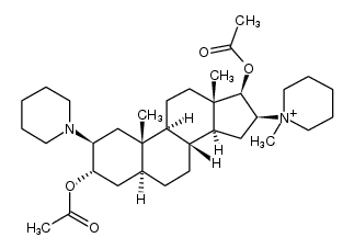 MUSCULO-SKELETAL NEUROMUSCULAR BLOCKER NEUROMUSCULAR NONDEPOLARIZING AGENTS CURARIFORM ANTAGONISM TO ACETYLCHOLINE | INJECTION | VD 22.7 LITER (65 KILOGRAM) PPB 70 PERCENT Cl 14.6 LITER / HOUR (65 KILOGRAM) HT 1.16 HOUR | NICOTINIC ACETYLCHOLINE RECEPTOR (NACHR) MUSCARINIC RECEPTOR | Acetylcholine receptor UNIPROT P02708 CHRNA1 more at DrugCentral | EMA ANSM (in French) Inxight Drugs Dailymed Drugs.com VigiAccess SIDER side effects Chemical Probes Portal ChEMBL BindingDB DrugBank |