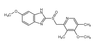 METABOLISM ANTISECRETORY (GASTRIC ACID) PROTON-PUMP INHIBITORS ANTI-ULCER AGENTS | ORAL INTRAVENOUS | Cmax 4.09 MICROMOLAR Tmax 2 HOUR F 35 PERCENT VD 16 LITER PPB 95 PERCENT Cl 33 LITER / HOUR HT 0.75 HOUR SOLUBILITY VERY SLIGHTLY SOLUBLE IN WATER | H+/K+ ATPASE | Potassium-transporting ATPase UNIPROT P20648 ATP4A more at DrugCentral | EMA ANSM (in French) Inxight Drugs Dailymed Drugs.com VigiAccess SIDER side effects Chemical Probes Portal ChEMBL BindingDB DrugBank |