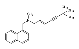 DERMATOLOGICALS ANTIFUNGAL ALLYLAMINES INHIBITS BIOSYNTHESIS OF ERGOSTEROL | TOPICAL ORAL | Cmax 23.5 NANOMOLAR Tmax 2 HOUR F 70 PERCENT PPB 99 PERCENT Cl 27 LITER / HOUR HT 21 HOUR SOLUBILITY SLIGHTLY SOLUBLE IN WATER | SQUALENE EPOXIDASE ENZYME | Squalene epoxidase UNIPROT Q4JEY0 more at DrugCentral | EMA ANSM (in French) Inxight Drugs Dailymed Drugs.com VigiAccess SIDER side effects Chemical Probes Portal ChEMBL BindingDB DrugBank |