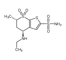 SENSORY ANTIGLAUCOMA ANTIHYPERTENSIVE AGENTS CARBONIC ANHYDRASE INHIBITORS | OPHTHALMIC | PPB 33 PERCENT HT 2880 HOUR SOLUBILITY SOLUBLE IN WATER | CARBONIC ANHYDRASE II PDB 3FW3 (CRYSTAL STRUCTURE OF SOLUBLE DOMAIN OF CA4 IN COMPLEX WITH DORZOLAMIDE) LIGAND CODE = ETS (link to the list of PDB complexes) Download experimental 3D coordinates of ETS with added hydrogens | Carbonic anhydrase 2 UNIPROT P00918 CA2 more at DrugCentral | EMA ANSM (in French) Inxight Drugs Dailymed Drugs.com VigiAccess SIDER side effects Chemical Probes Portal ChEMBL BindingDB DrugBank |