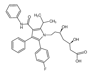 CARDIOVASCULAR ANTIHYPERLIPIDEMIC HMG-COA REDUCTASE INHIBITOR ANTICHOLESTEREMIC AGENTS | ORAL | Tmax 1.5 HOUR F 14 PERCENT VD 381 LITER PPB 98 PERCENT Cl 18.8 LITER / HOUR (EQN) HT 14 HOUR SOLUBILITY IS VERY SLIGHTLY SOLUBLE IN DISTILLED WATER PH 7.4 PHOSPHATE BUFFER | 3-HYDROXY-3-METHYLGLUTARYL-COENZYME A REDUCTASE PDB 1HWK (COMPLEX OF THE CATALYTIC PORTION OF HUMAN HMG-COA REDUCTASE WITH ATORVASTATIN) LIGAND CODE = 117 (link to the list of PDB complexes) Download experimental 3D coordinates of 117 with added hydrogens | 3-hydroxy-3-methylglutaryl-coenzyme A reductase UNIPROT P04035 HMGCR more at DrugCentral | EMA ANSM (in French) Inxight Drugs Dailymed Drugs.com VigiAccess SIDER side effects Chemical Probes Portal ChEMBL BindingDB DrugBank |