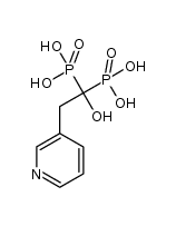 MUSCULO-SKELETAL OSTEOPOROSIS OSTEOCLASTIC RESORPTION INHIBITOR BISPHOSPHONATES HAS AN AFFINITY FOR HYDROXYAPATITE CRYSTALS IN BONE AND ACTS AS AN ANTIRESORPTIVE AGENT | ORAL | Tmax 1 HOUR F 0.63 PERCENT VD 897 LITER (65 KILOGRAM) PPB 24 PERCENT Cl 7.3 LITER / HOUR HT 561 HOUR SOLUBILITY SOLUBLE IN WATER | FARNESYL PYROPHOSPHATE SYNTHASE PDB 4KPD (CRYSTAL STRUCTURE OF HUMAN FARNESYL PYROPHOSPHATE SYNTHASE (Y204F) MUTANT COMPLEXED WITH MG, RISEDRONATE AND ISOPENTENYL PYROPHOSPHATE) LIGAND CODE = RIS (link to the list of PDB complexes) Download experimental 3D coordinates of RIS with added hydrogens | Farnesyl pyrophosphate synthase UNIPROT P14324 FDPS more at DrugCentral | EMA ANSM (in French) Inxight Drugs Dailymed Drugs.com VigiAccess SIDER side effects Chemical Probes Portal ChEMBL BindingDB DrugBank |