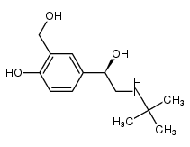 RESPIRATORY SYSTEM BETA2-ADRENERGIC BRONCHODILATOR AGONIST BETA-BLOCKERS | INHALATION | Cmax 12.55 NANOMOLAR HT 4.6 HOUR SOLUBILITY 180 MILLIGRAM / MILLILITER IN WATER | BETA2-ADRENERGIC PDB 2Y04 (TURKEY BETA1 ADRENERGIC RECEPTOR WITH STABILISING MUTATIONS AND BOUND PARTIAL AGONIST SALBUTAMOL) LIGAND CODE = 68H (link to the list of PDB complexes) Download experimental 3D coordinates of 68H with added hydrogens | Beta-2 adrenergic receptor UNIPROT P07550 ADRB2 more at DrugCentral | EMA ANSM (in French) Inxight Drugs Dailymed Drugs.com VigiAccess SIDER side effects Chemical Probes Portal ChEMBL BindingDB DrugBank |