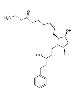 SENSORY ANTIHYPERTENSIVE ANTIGLAUCOMA PROSTAGLANDIN ANALOG | OPHTHALMIC TOPICAL | Cmax 0.19 NANOMOLAR Tmax 0.16 HOUR VD 43.5 LITER (65 KILOGRAM) PPB 12 PERCENT Cl 97.5 LITER / HOUR (65 KILOGRAM) HT 0.75 HOUR SOLUBILITY SLIGHTLY SOLUBLE IN WATER | PDB 2F38 (CRYSTAL STRUCTURE OF PROSTAGLANDIN F SYNATHASE CONTAINING BIMATOPROST) LIGAND CODE = 15M (link to the list of PDB complexes) Download experimental 3D coordinates of 15M with added hydrogens | Prostaglandin F2-alpha receptor UNIPROT P43088 PTGFR more at DrugCentral | EMA ANSM (in French) Inxight Drugs Dailymed Drugs.com VigiAccess SIDER side effects Chemical Probes Portal ChEMBL BindingDB DrugBank |