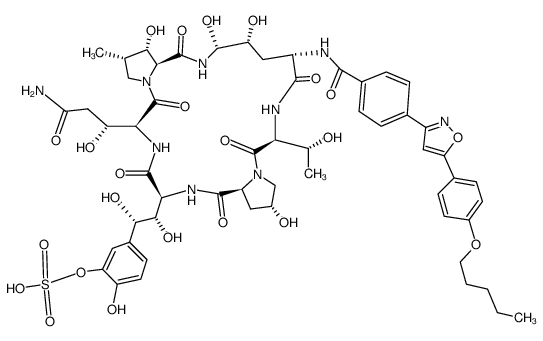 ANTIINFECTIVES ANTIFUNGALS MEMBER OF THE ECHINOCANDIN OF ANTIFUNGAL AGENTS | INTRAVENOUS INJECTION | Cmax 7.95 MICROMOLAR VD 25.35 LITER (65 KILOGRAM) PPB 99 PERCENT Cl 1.16 LITER / HOUR (65 KILOGRAM) HT 13.4 HOUR SOLUBILITY FREELY SOLUBLE IN WATER | BETA-1,3-GLUCAN SYNTHASE | Beta-1,3-glucan synthase catalytic subunit 1 UNIPROT O13428 GSC1 more at DrugCentral | EMA ANSM (in French) Inxight Drugs Dailymed Drugs.com VigiAccess SIDER side effects Chemical Probes Portal ChEMBL BindingDB DrugBank |
