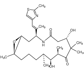 ANTINEOPLASTIC CYTOTOXIC ANTIBIOTICS MICROTUBULE INHIBITOR | INTRAVENOUS | Cmax 0.49 MICROMOLAR Tmax 3 HOUR VD 1000 LITER PPB 72 PERCENT Cl 39 LITER / HOUR (65 KILOGRAM) HT 52 HOUR | BETA TUBULIN PDB 7DAF (IXA IN COMPLEX WITH TUBULIN) LIGAND CODE = GZX (link to the list of PDB complexes) Download experimental 3D coordinates of GZX with added hydrogens | Tubulin beta UNIPROT P07437 TUBB more at DrugCentral | EMA ANSM (in French) Inxight Drugs Dailymed Drugs.com VigiAccess SIDER side effects Chemical Probes Portal ChEMBL BindingDB DrugBank |